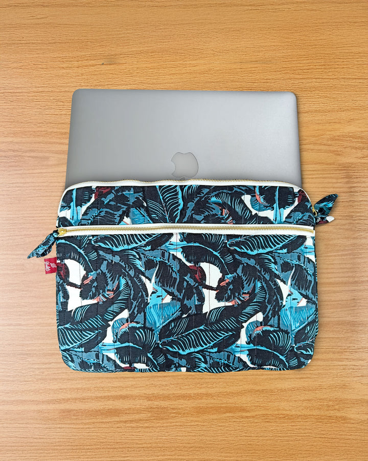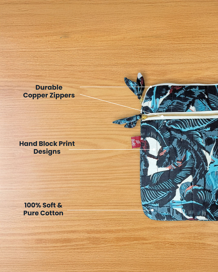 Crafted with traditional handblock printing, this laptop sleeve features a unique, artisanal design that blends elegance with everyday functionality.