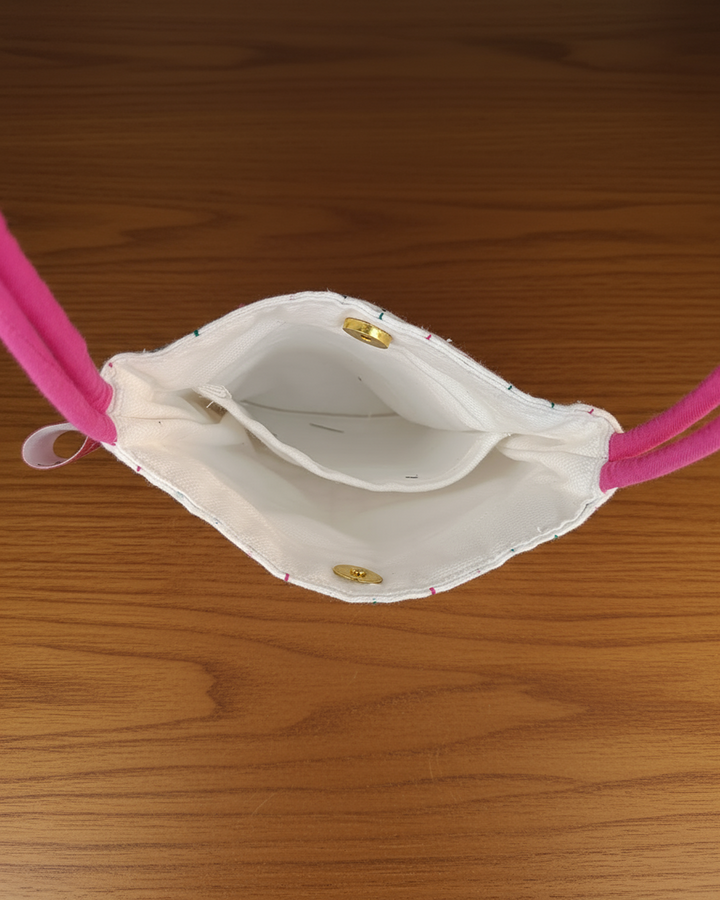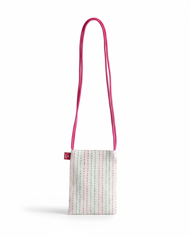 Yukti Kantha Stitch Cotton Sling Bag – 13x11 in | Handcrafted Minimalist Sling with Magnetic Closure, Inner Pocket & Long Strap