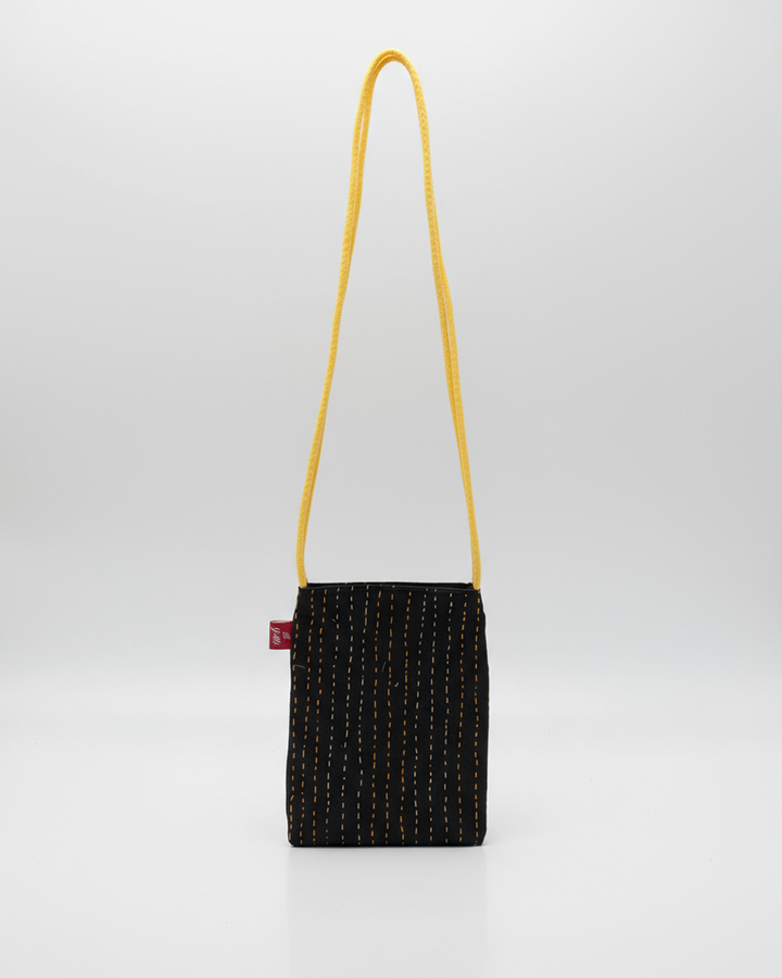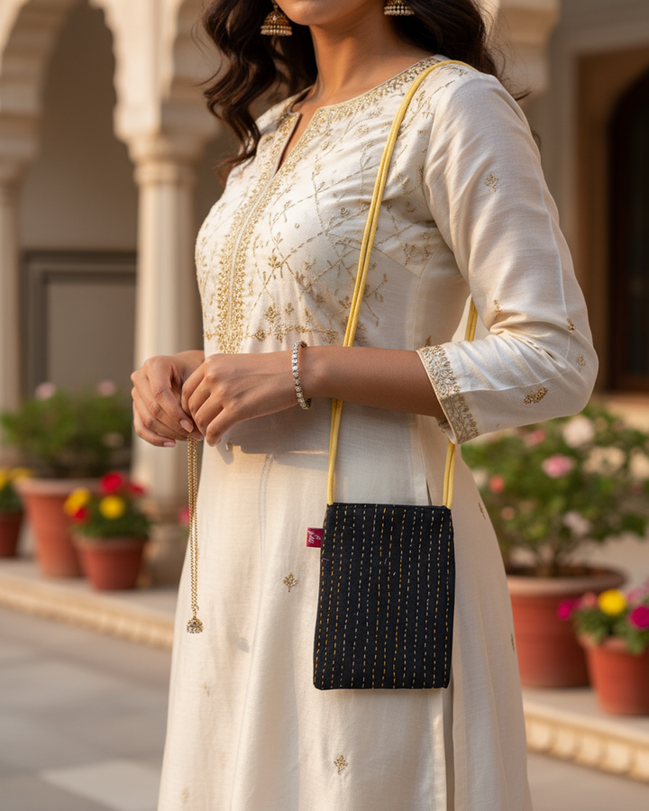 Yukti Midnight Ember Cotton Sling Bag – 13x11 in | Handcrafted Minimalist Stitch Sling with Magnetic Closure, Inner Pocket & Long Strap